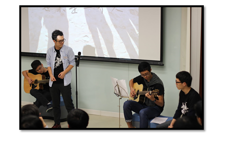 Then there was the live performance from LandMan Music, a mainland undergraduate student group from HKU. Aimed at spreading their music concept and dream, they have already achieved great success. In their new song, Roving, they used beautiful melodies to express their genuine feeling of homesick and their pursuit of ideals, singing out the heartfelt wishes of many mainland students. Deeply moved and impressed, the guests and students applauded them for their music talent and creativity.
