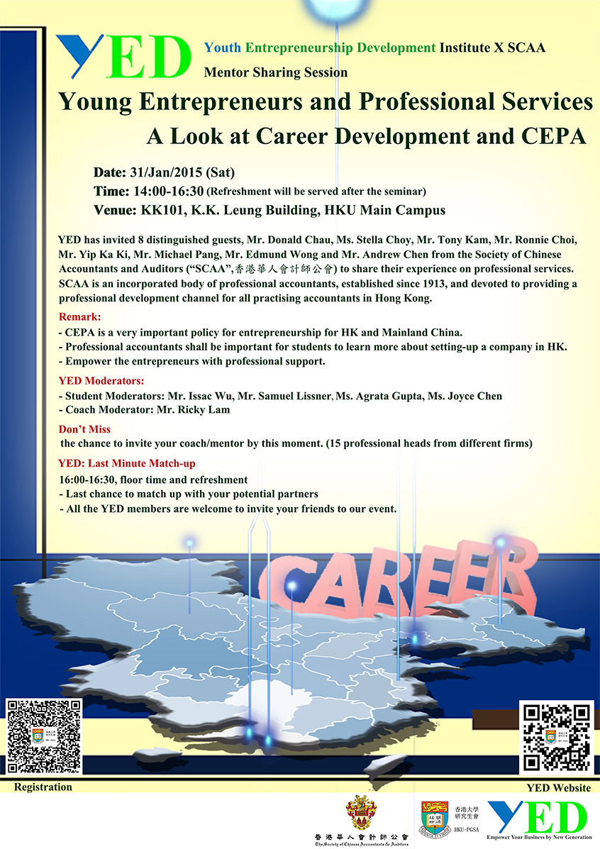 - All the YED Members and PGSA Members are welcome. Please feel free invite your friends to participate the "Asia Entrepreneurship Summit and Exhibition 13-14 March @ HKU".