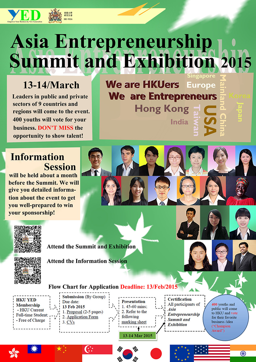 This is the information session for the upcoming big event Asia Entrepreneurship Summit and Exhibition (AESE). For YED current Ambassadors, come and get feedback on your proposals and guidelines for preparation for AESE! For those who don’t want to miss such an event to meet mentors from different fields in Hong Kong or wish to make friends from all over the world, come and get the chance to participate! You cannot miss it!